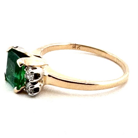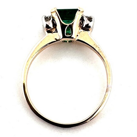 THE VINTAGE RING WITH ONE SQUARE CUT EMERALD THAT WEIGHS 1.17 CARATS, FLANKED BY FOUR SMALL DIAMONDS THAT WEIGH APPROXIMATELY 0.20 CARAT TOTAL.